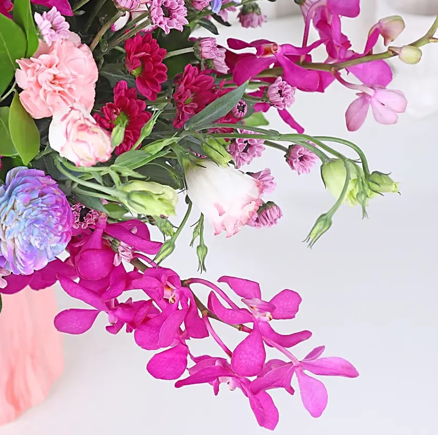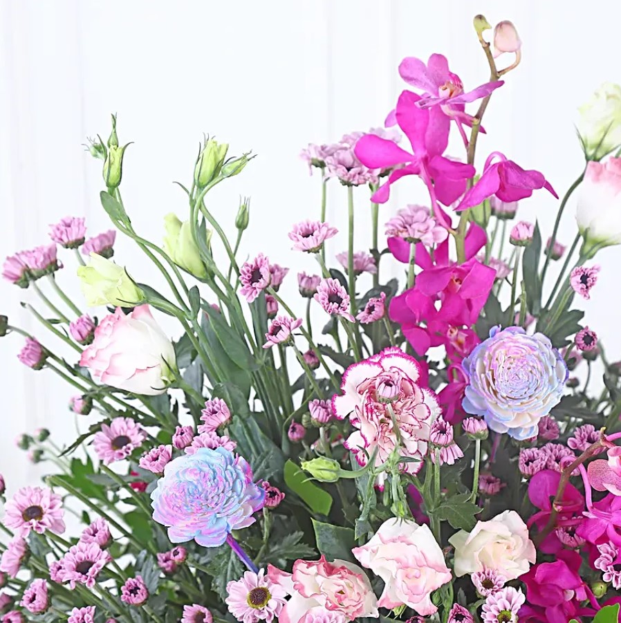 - Types: Double-shaded carnation, Mocaro, Santini, Eustoma, Dry flower